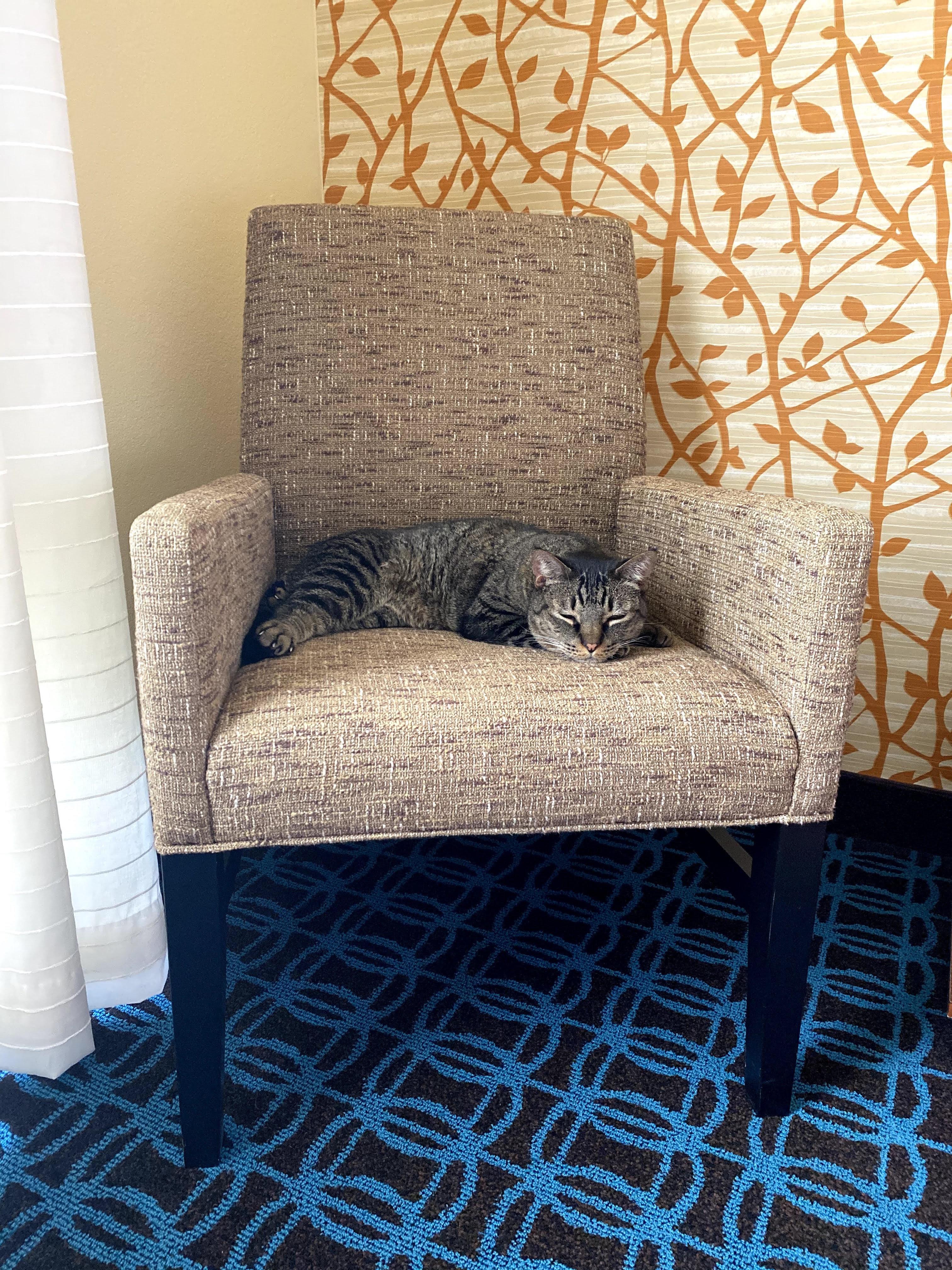 The owners live above the garden studio and have an awesome rescue dog, Jay-z. He would come bounding down the porch stairs to romp around the patio area and every so often his eyes and Benny’s eyes would meet. Benny would lunge at the window while hissing and batting while Jay-z growled and barked with his nose to the window. My fearless cat had found another dog to torturer on this trip.