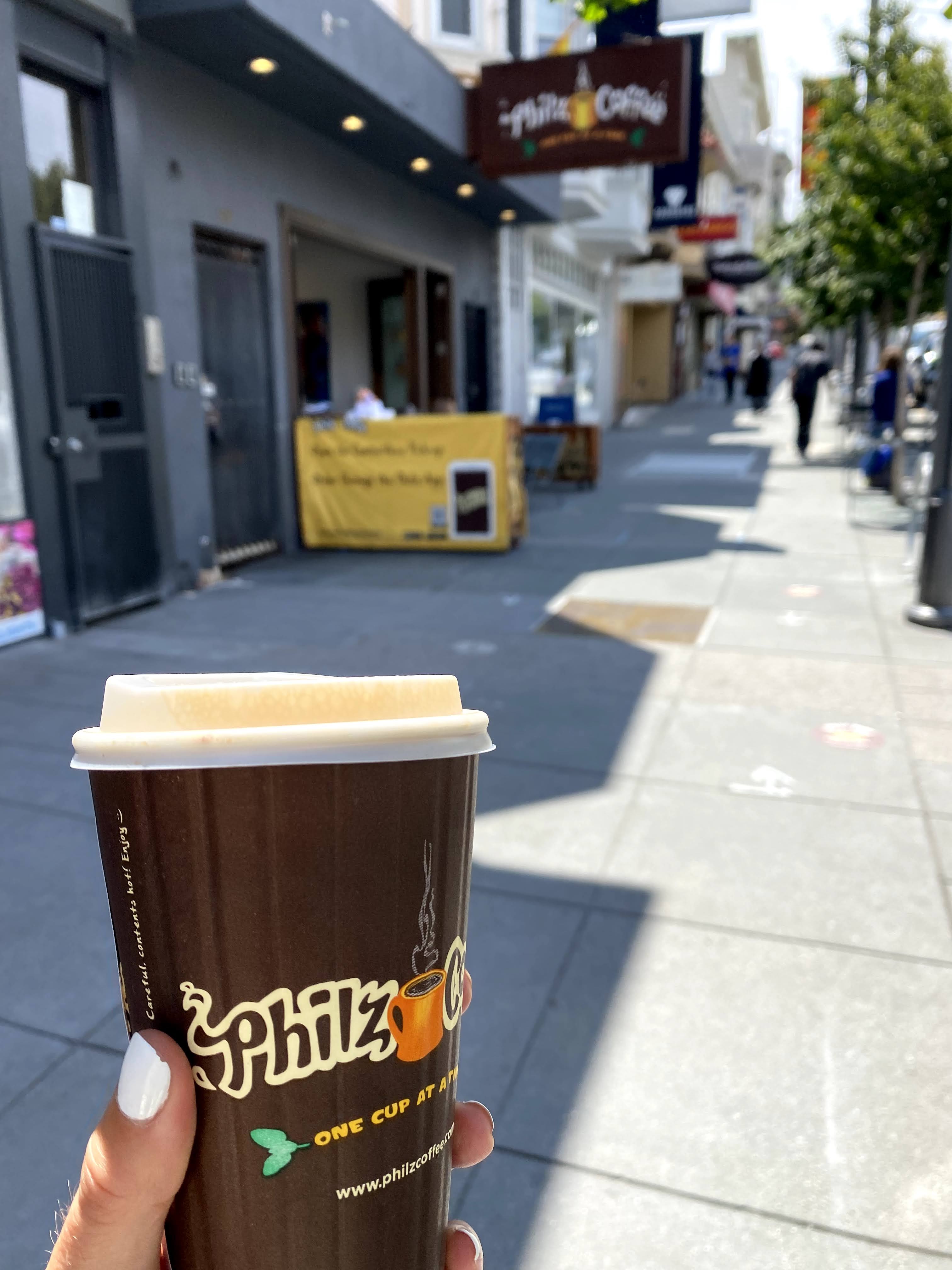A high school friend in San Fran told me I needed to try Philz Coffee while here. The first day I wasn’t working I got myself a Philtered Soul which is their signature pour-over coffee with hazelnut – hell yes. In my decision to try this specific blend I was also deciding to have caffeinated coffee which I usually stay away from if I’m anxious.